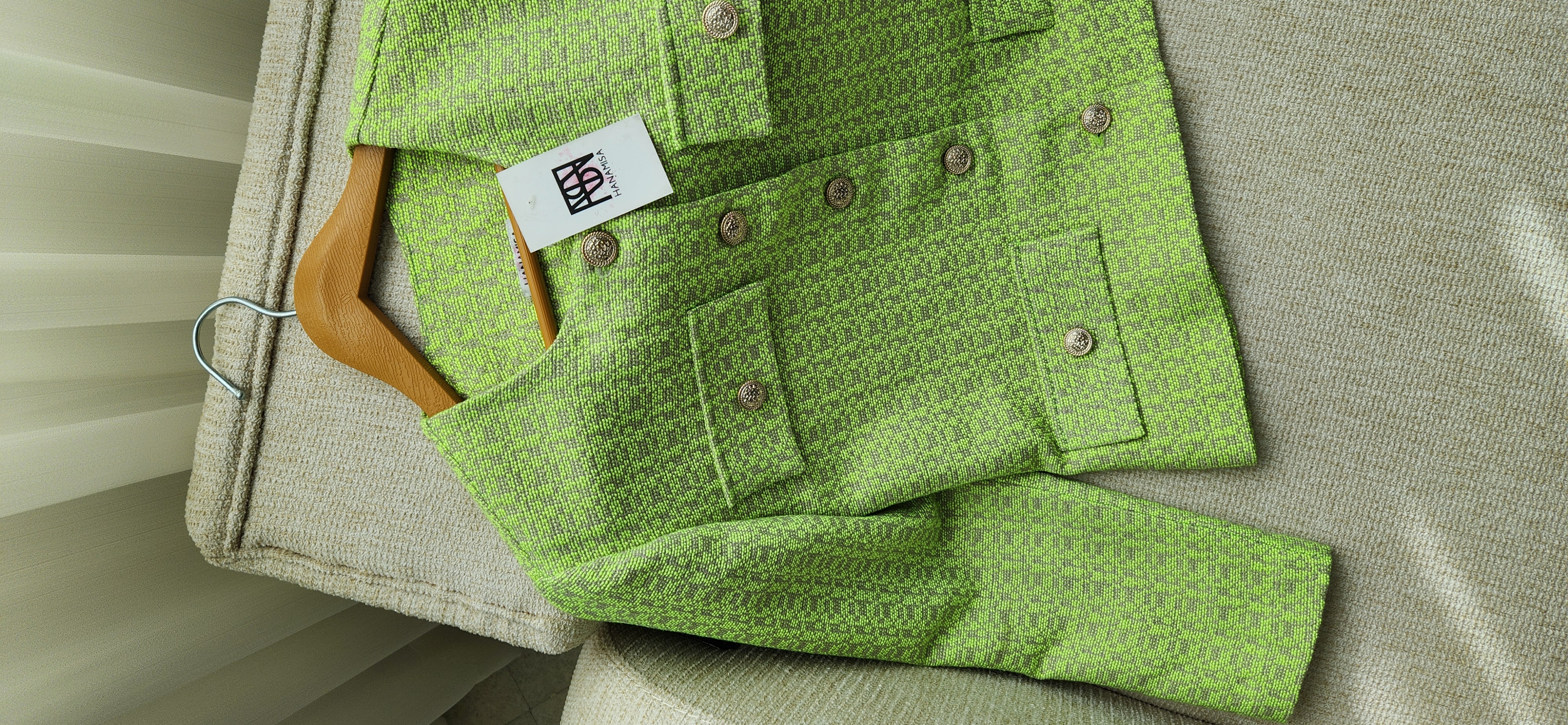 کت بهاری هانامیسا از اون کت های خوش دوخت که هرجا بپوشی همه عاشقش میشن. یه رنگ ماچایی خوشگل که هرجایی نمیتونی پیداش کنی 🌸 کت آستر دار